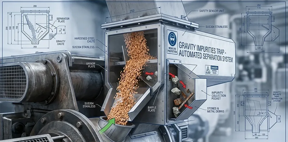 Trả lời: Chúng tôi trang bị Bẫy tạp chất trọng lực ở đầu vào để loại bỏ các mảnh vụn nặng trước khi nó đi vào buồng.